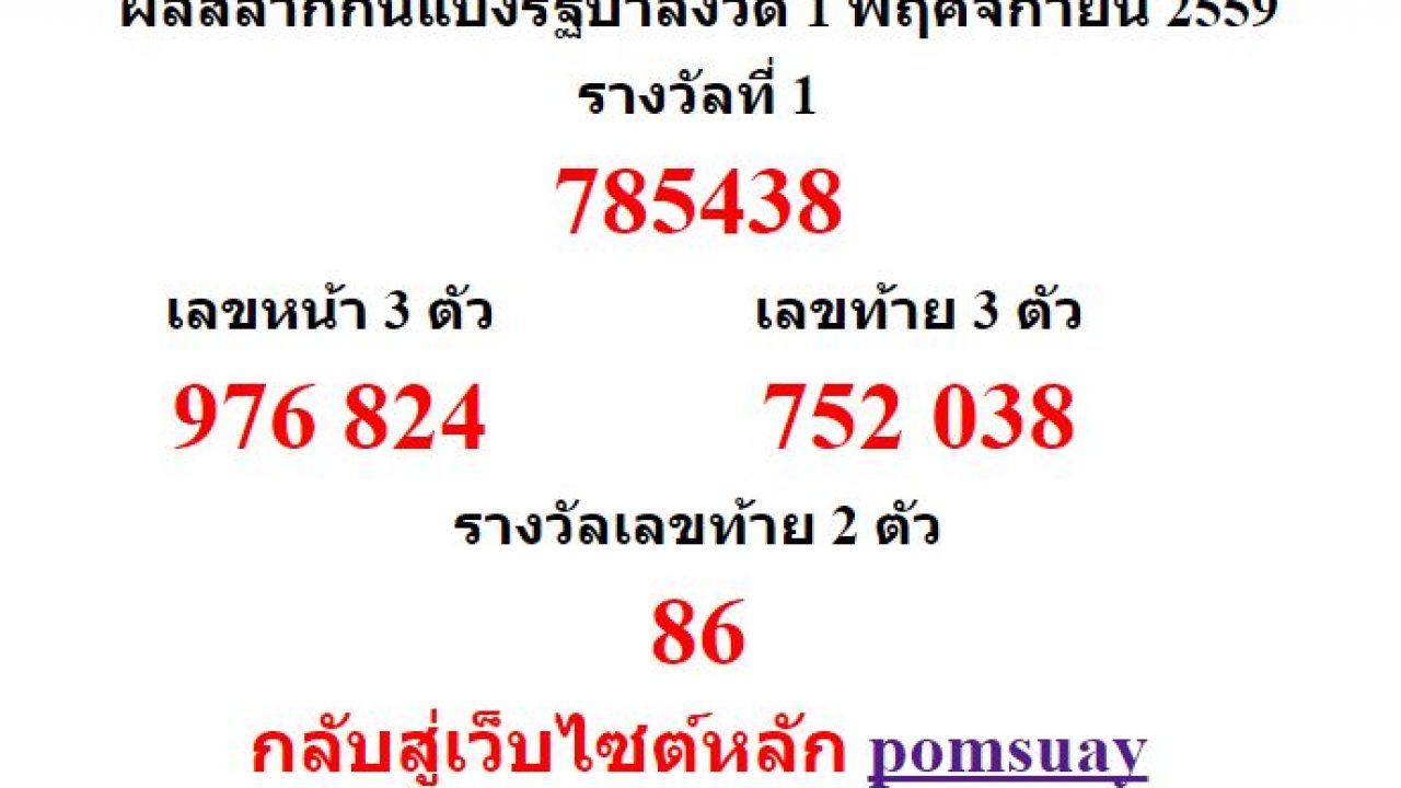 ตรวจหวย 1 พฤศจิกายน 2559 - เป ดเลขเด ด หวยออกเด อนพฤศจ กายน ย อนหล ง 7 ป